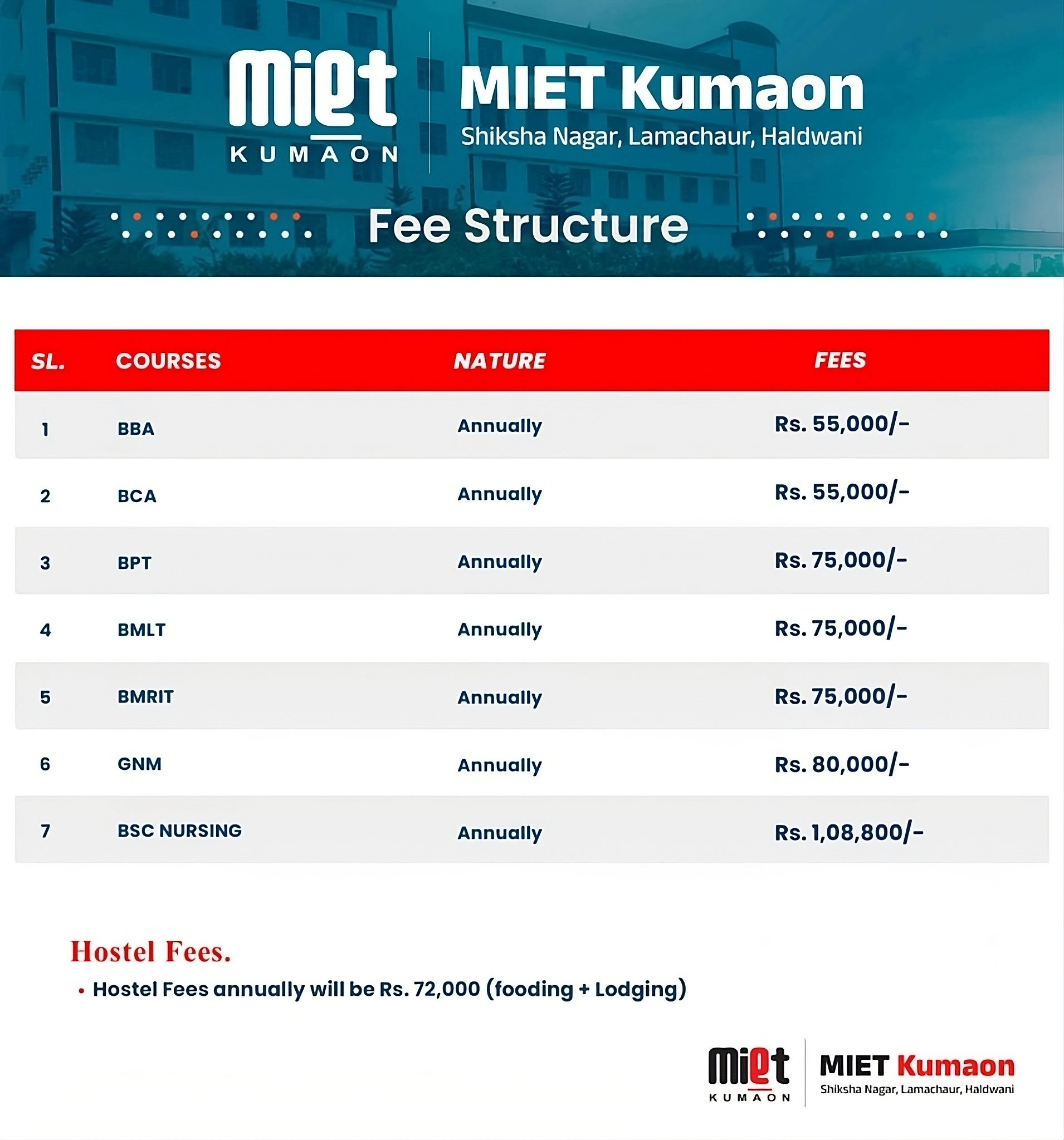 MIET Kumaon is a reputed engineering and management institute in Uttarakhand, offering quality education, modern infrastructure, experienced faculty, and industry-focused programs to nurture future-ready professionals in various technical disciplines. Read more