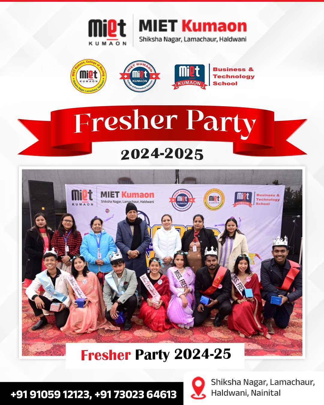 Learn More →At MIET Kumaon College, we believe in nurturing talent and transforming students into future-ready professionals. What makes us unique is our commitment to academic excellence combined with practical exposure. Our experienced faculty, state-of-the-art infrastructure, and industry-aligned curriculum ensure that students receive both theoretical knowledge and hands-on training. We offer a diverse range of career-oriented courses like BCA, BBA, BPT, BMLT, BMRIT, GNM, and BSc Nursing, catering to various interests and aspirations. Regular seminars, workshops, and personality development sessions boost confidence and communication skills. With a student-focused approach, modern teaching methodologies, and a safe, vibrant campus environment, MIET Kumaon College stands out as a hub of learning, growth, and future opportunities in the field of education.