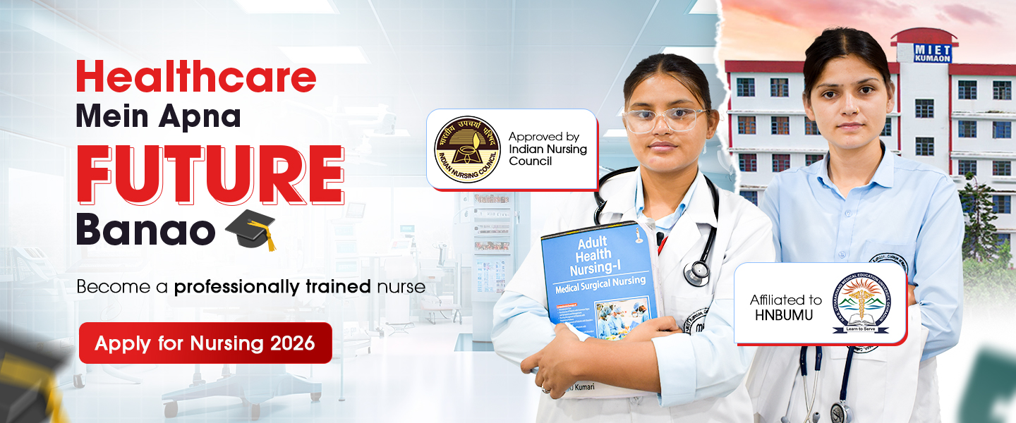 MIET Kumaon offers a range of in-demand courses that prepare students for successful careers. Among the most popular programs are BCA and BBA, ideal for students aspiring to enter the IT and business sectors. In the healthcare domain, BPT, B.Sc Nursing, and GNM stand out for their strong career prospects in hospitals and clinical settings. Technical healthcare courses like BMLT and BRIT are also gaining popularity due to rising demand in diagnostics and imaging. With expert faculty, practical training, and placement support, MIET Kumaon is a top choice for professional education in Uttarakhand.
