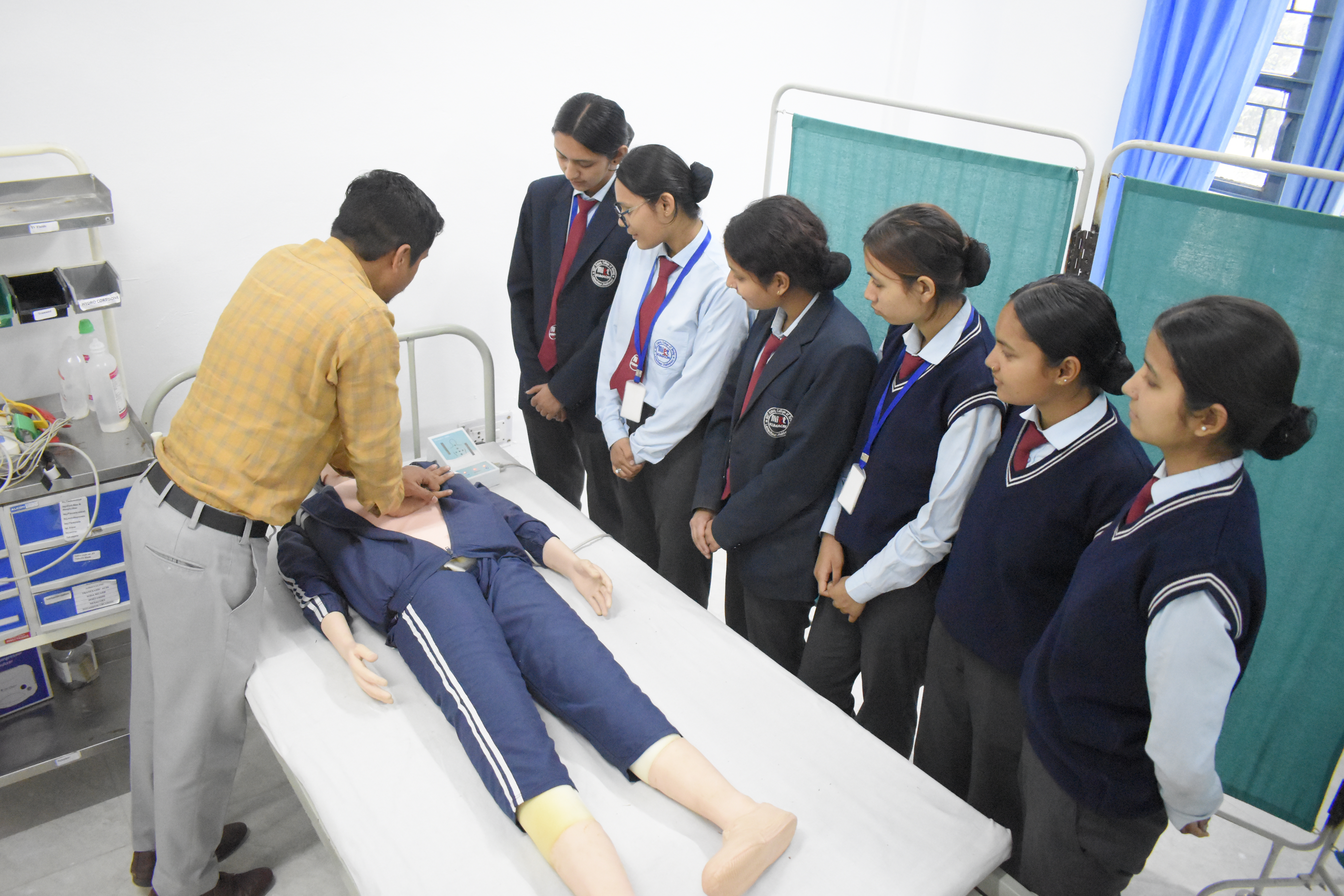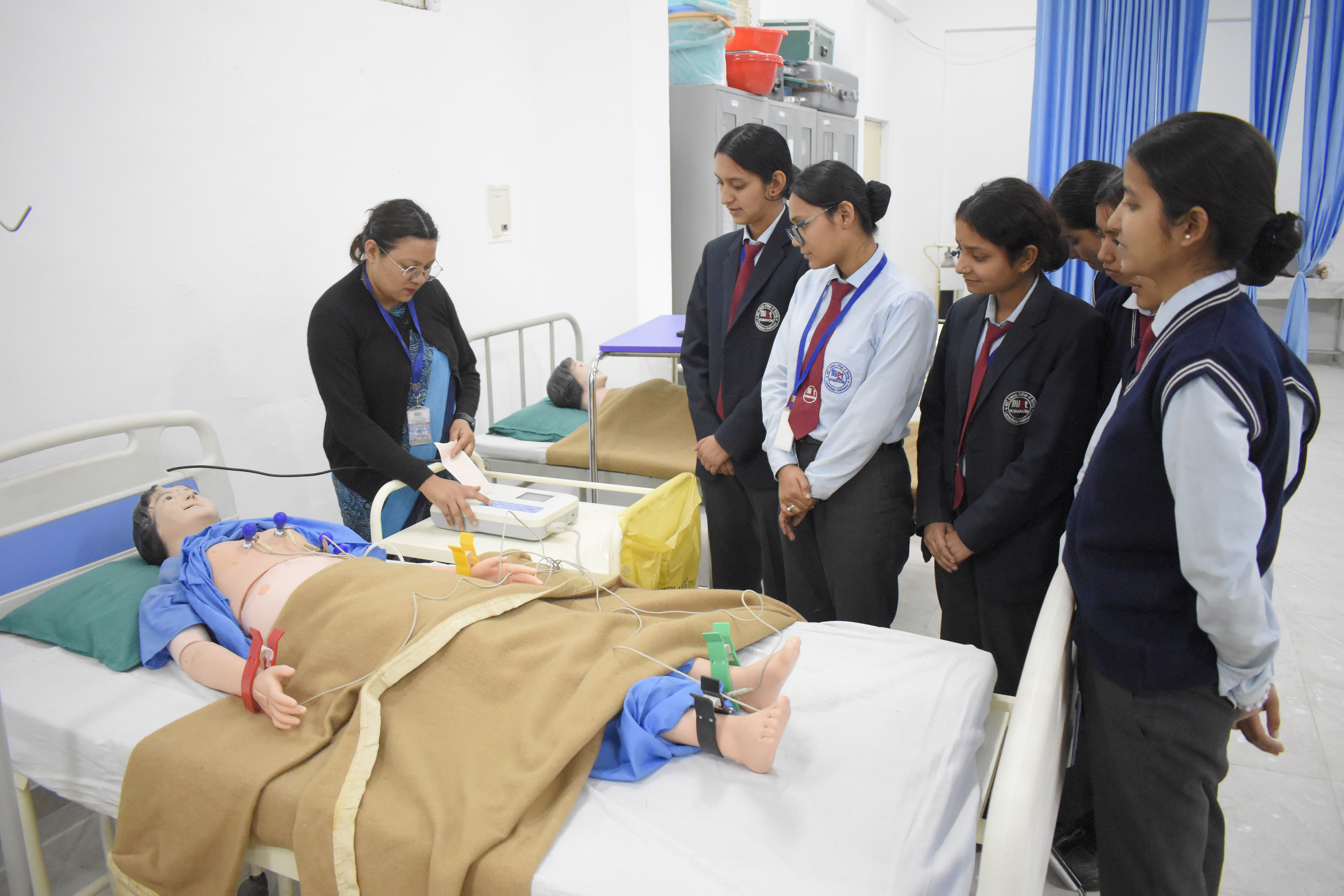 At MIET Kumaon College of Nursing, practical learning is an important part of nursing education. The college has well-equipped laboratories where students can learn and practice different nursing procedures before performing them in real hospital settings. Our laboratories provide a safe and supportive environment for students to develop essential clinical skills. With the help of models, simulators, and modern medical equipment, students are trained to understand patient care, nursing techniques, and clinical procedures under the guidance of experienced faculty members. Practical sessions in the labs help students build confidence and improve their skills. These training facilities follow the guidelines and standards of the Indian Nursing Council (INC) and the affiliated university to ensure quality nursing education.