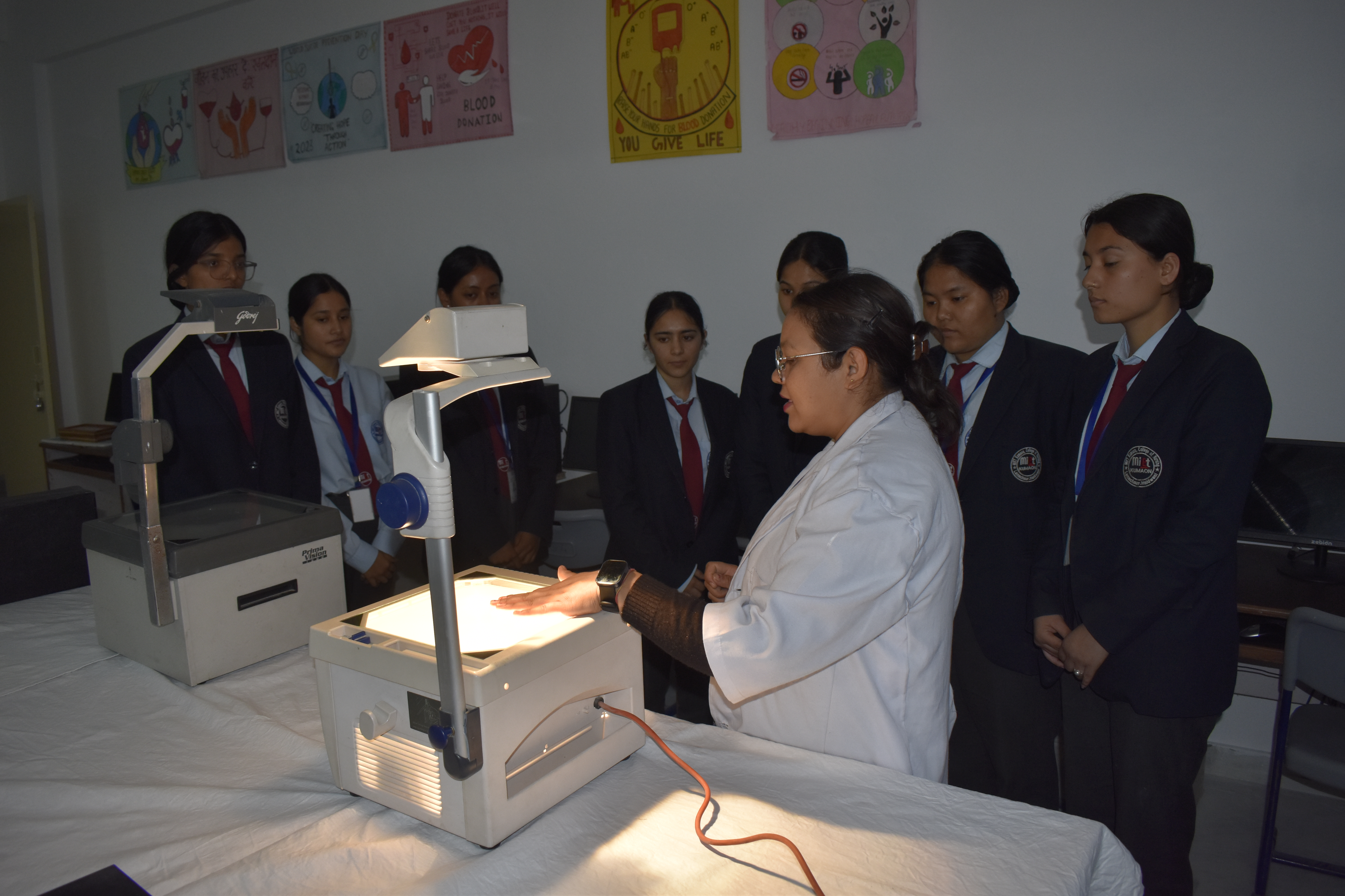 Students learn how to prepare and use educational materials for health awareness programs, classroom teaching, and community health education. The lab encourages creativity, confidence, and effective knowledge sharing using modern teaching technologies.