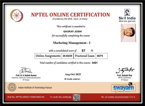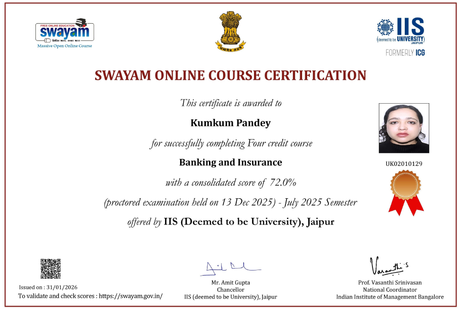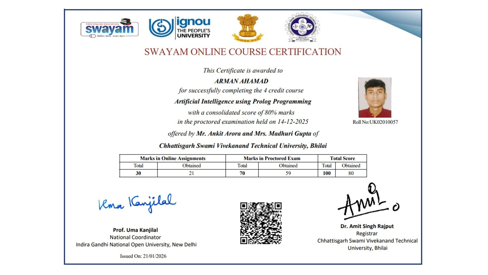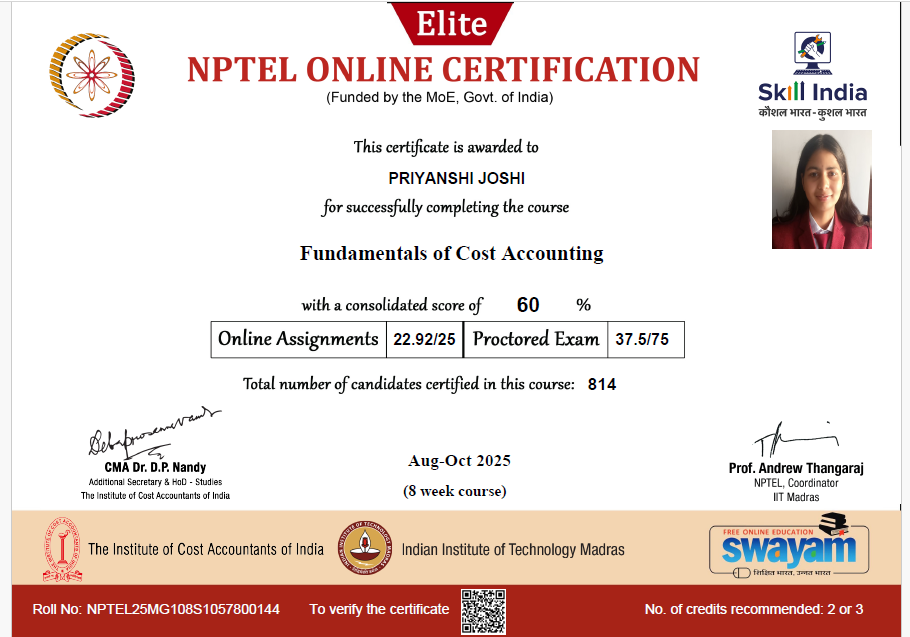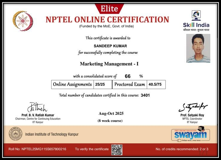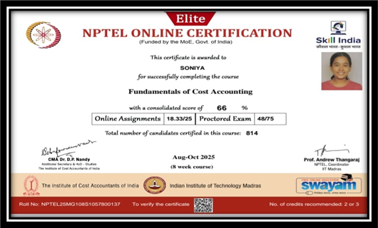 BBA 3rd Year student earned certification from IIT Kharagpur.